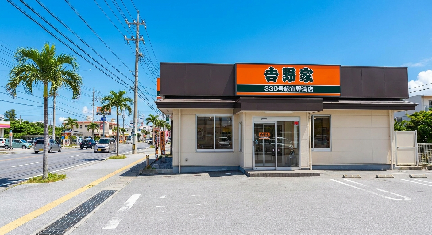 沖縄県宜野湾市にある「吉野家 330号線宜野湾店」の基本情報をまとめました。住所・電話番号・アクセス・駐車場・使える支払い方法まで、来店前に知っておきたい情報を整理します。
