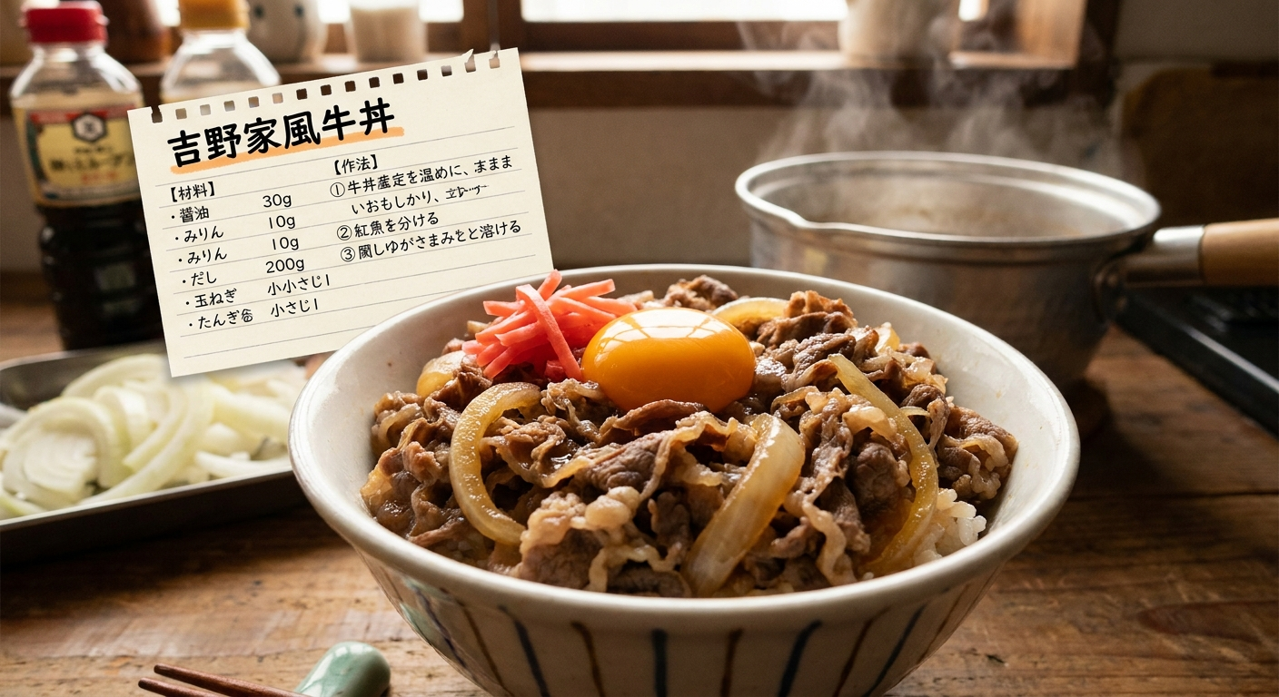 吉野家の牛丼をおうちで再現したい!」そんな願いを叶えるレシピがヒルナンデスで紹介され、大きな話題になりました。再現レシピ研究家の稲垣飛鳥さんが考案した、材料費1杯約200円で作れる吉野家風牛丼の作り方を詳しく解説します。